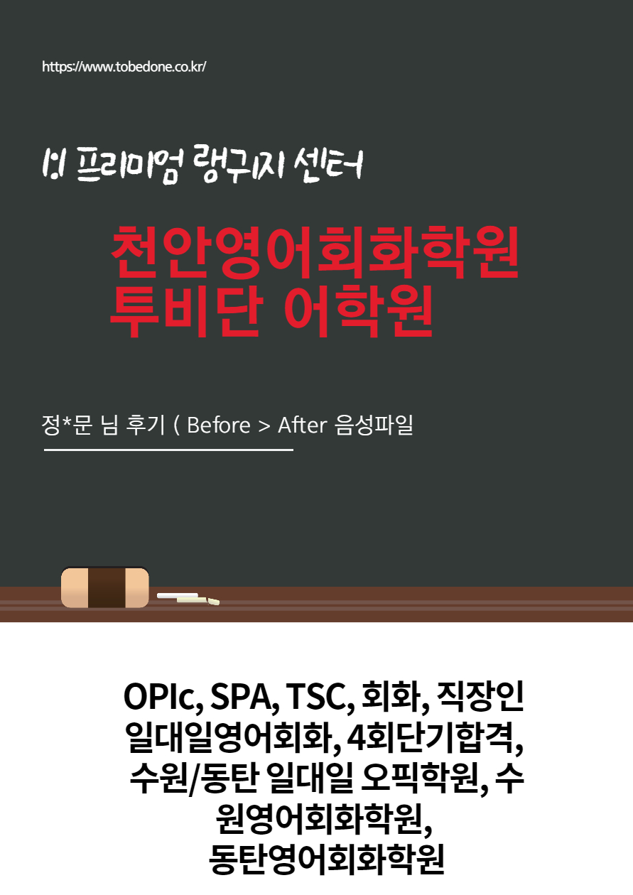 천안 성인영어회화학원 투비단 어학원 홍-현님 후기 ( Before > After 음성파일)